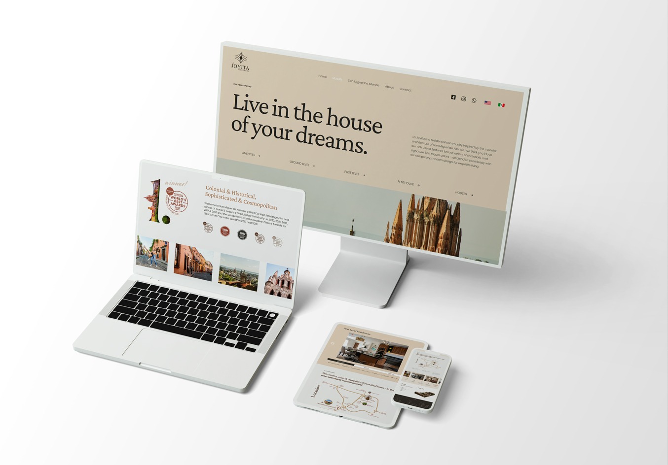 06 www.lajoyitasanmigueldeallende.com A multilingual (Spanish/English) website for a luxury housing development in San Miguel de Allende, Mexico and showcasing an array of custom designed maps, housing model layouts, videos and photo galleries. Created to tantalize, market to, and inform an audience of new home buyers.